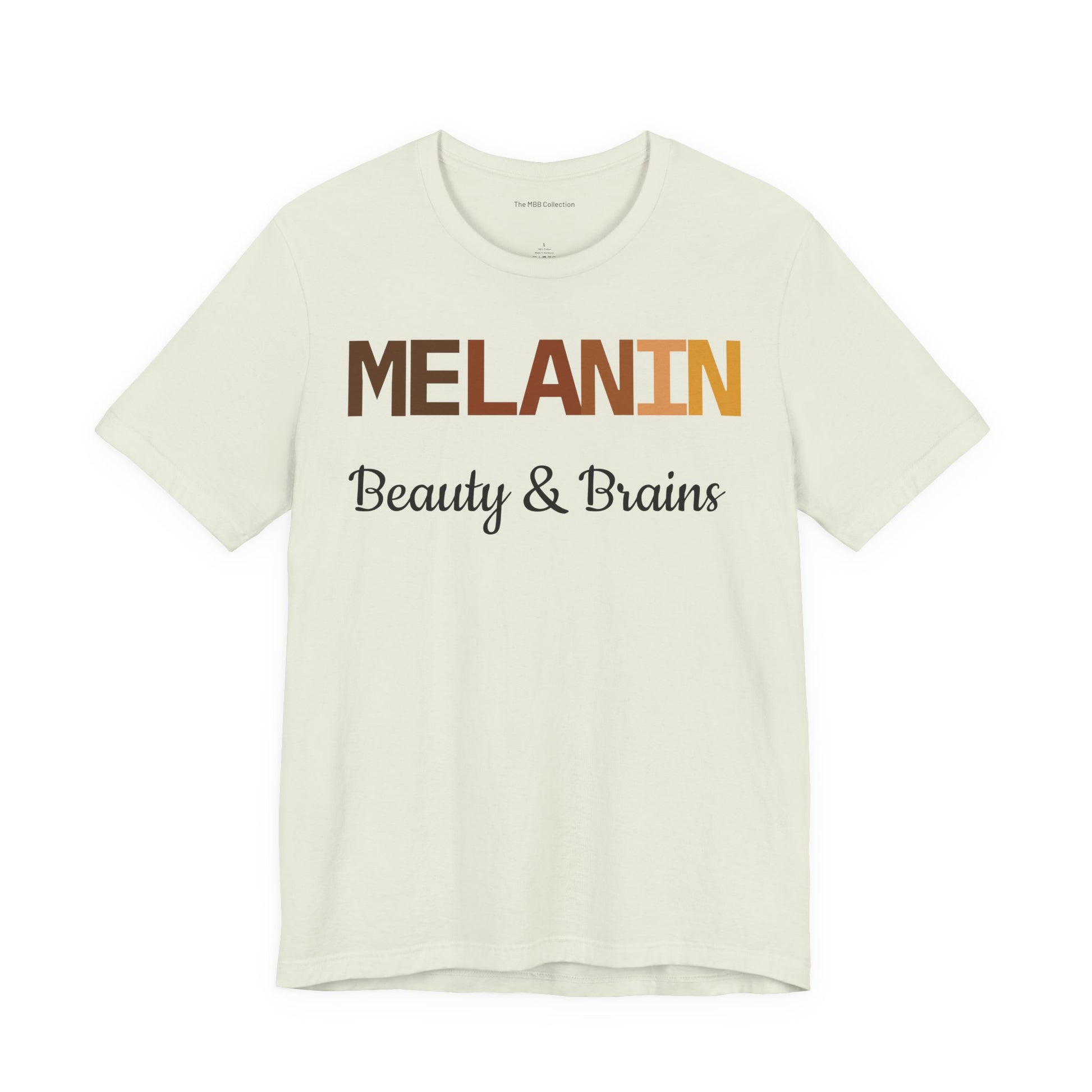 Empowering Melanin Beauty & Brains T-shirt designed to inspire melanin women. Celebrates black/melanin women being smart, intelligent, and beautiful, making it a great gift for those proud of their melanin pride. Perfect for casual and semi-formal settings, this tee is made with 100% Airlume combed and ring-spun cotton, a lightweight fabric that is easy to layer and breathable. Ideal for active and leisure wear, it features a retail fit and crew neckline for timeless style. Relevant to individuals celebrating melanin beauty and intelligence, suitable for occasions like Black History Month and Women's History Month.